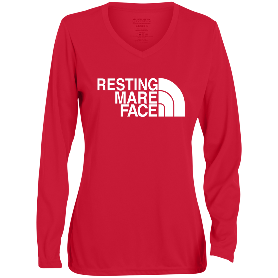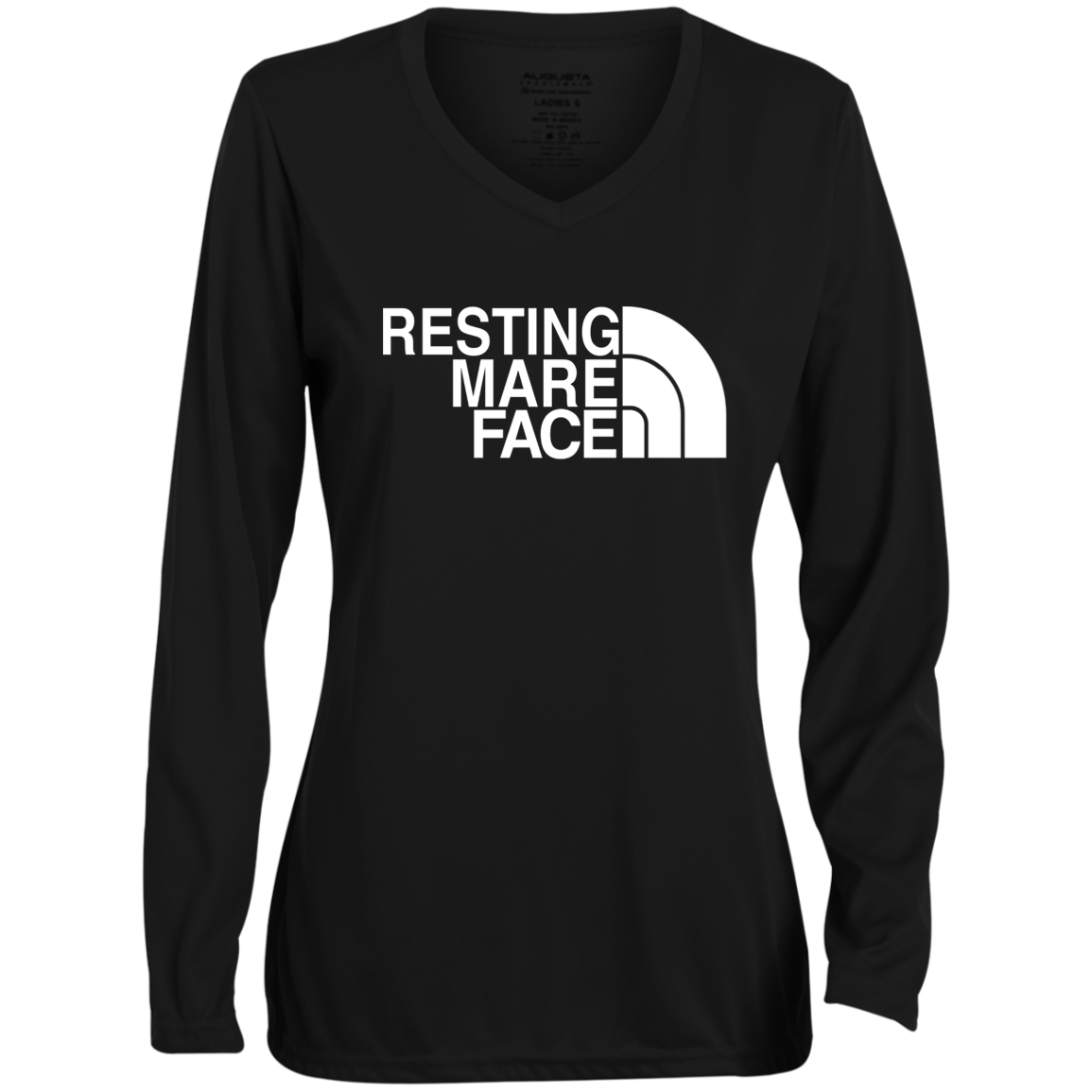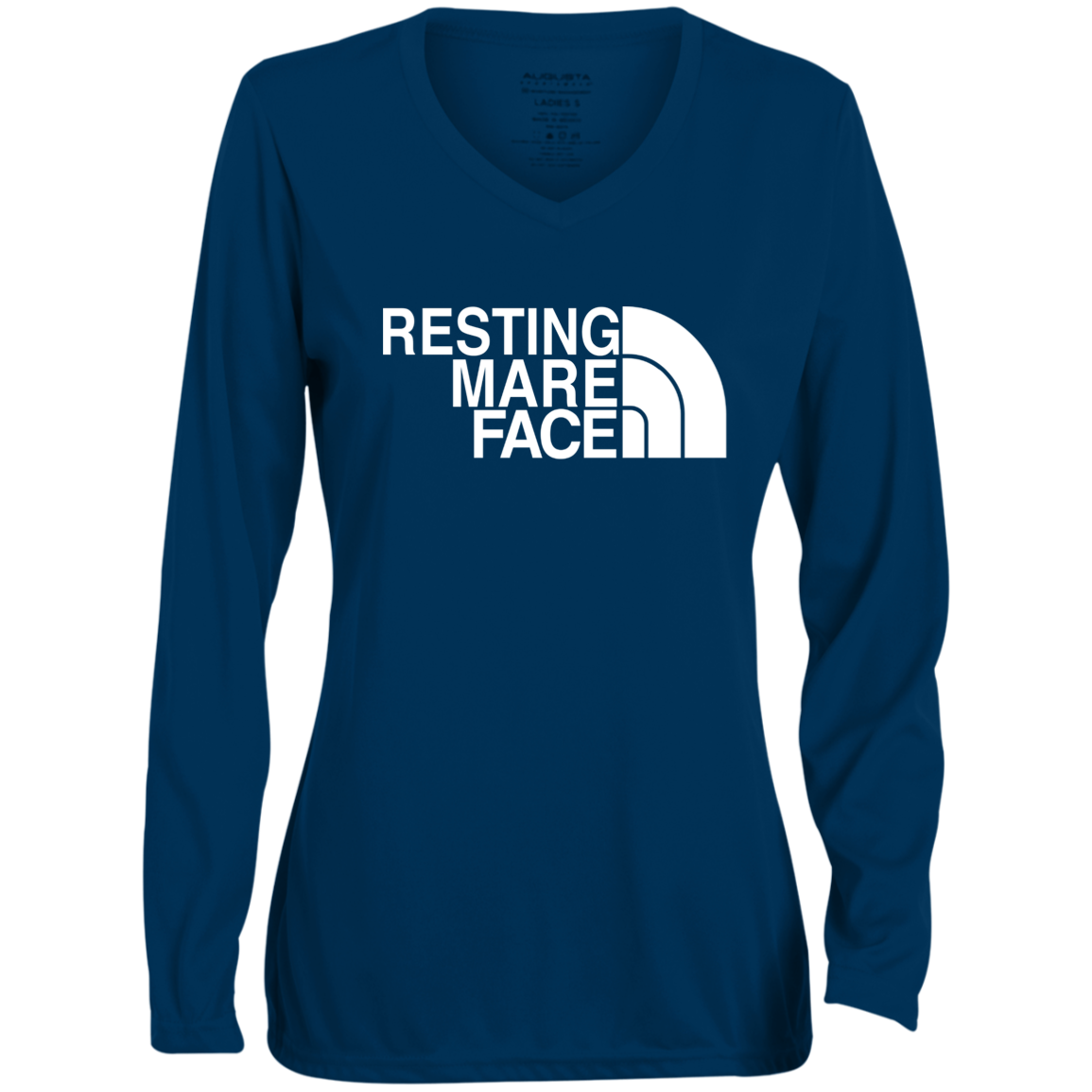 RESTING MARE FACE (white) 1788 Ladies' Moisture-Wicking Long Sleeve V-Neck Tee
