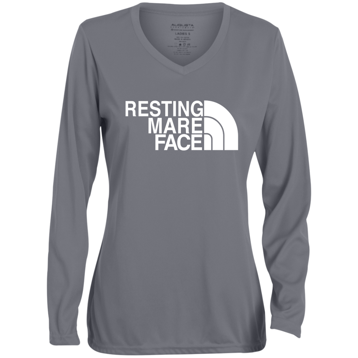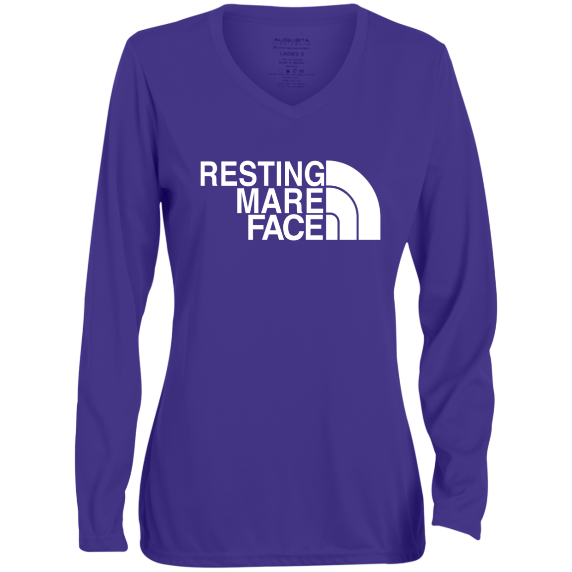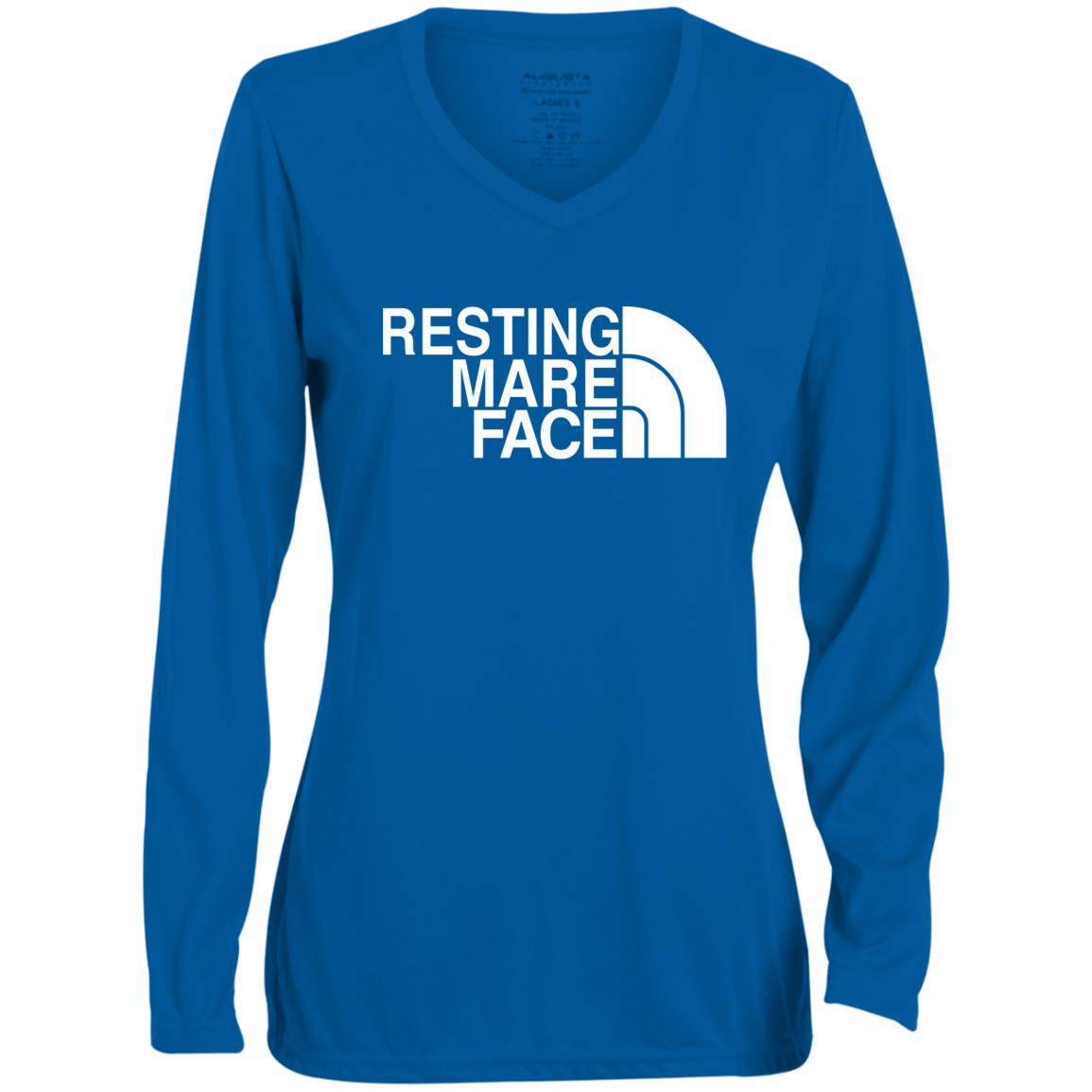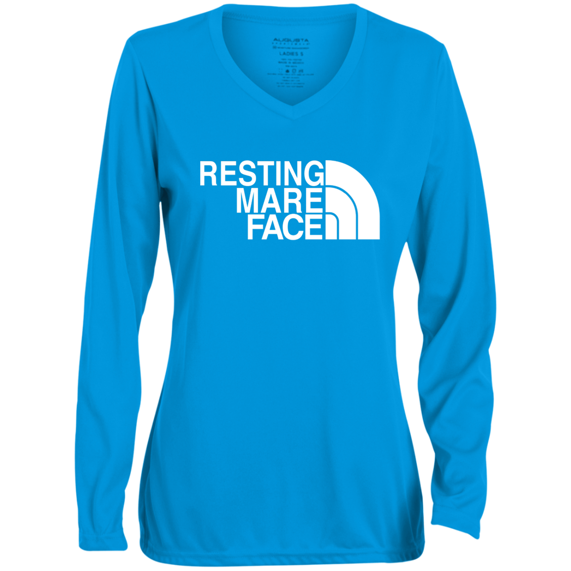 RESTING MARE FACE (white) 1788 Ladies' Moisture-Wicking Long Sleeve V-Neck Tee